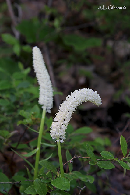 One of those interesting species not normally seen during Flora-Quest was this unparalleled member of the lily family (Liliaceae), fairy wand (Chamaelirium luteum). Also known as devil's bit, this species is diecious, meaning it has both separate male and female plants. The one's pictured above are both male staminate flowers and almost always greatly outnumber the females in any given population. You aren't likely to find any other Chamaelirium species elsewhere as this is the sole member of its monotypic genus.